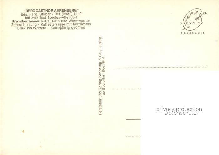 73086721 Bad Sooden-Allendorf Berggasthof Ahrenberg postalisch nicht gelaufen Erhaltung siehe scans [NatalD47] KatCode: 11110006636001