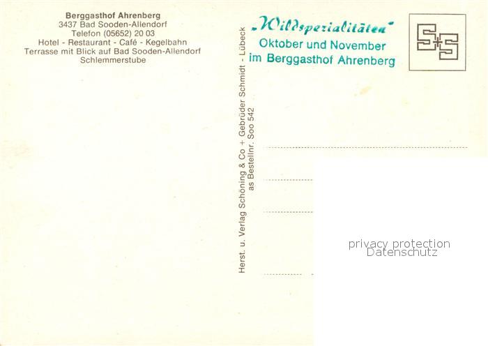 73087760 Bad Sooden-Allendorf Berggasthof Ahrenberg postalisch nicht gelaufen Erhaltung siehe scans [KathaD81] KatCode: 11110006636001