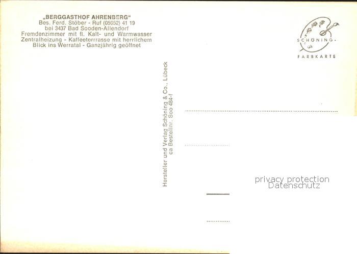 Bad Sooden-Allendorf Berggasthof Ahrensberg postalisch nicht gelaufen Erhaltung siehe scans