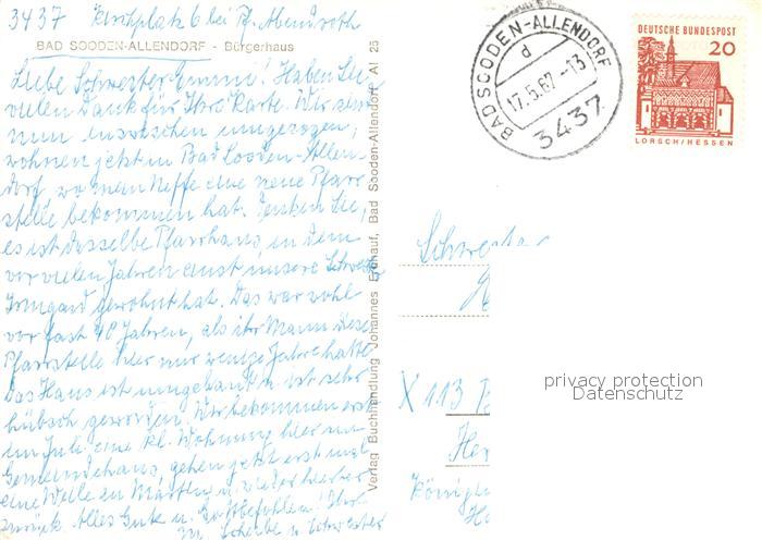 73294961 alte Postkarte Bad Sooden-Allendorf Buergerhaus postalisch gelaufen Erhaltung siehe scans [PaolaD17] KatCode: 11110006636001