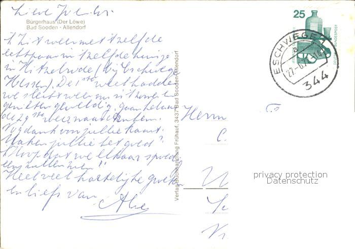 72446759 alte Postkarte Bad Sooden-Allendorf Buergerhaus postalisch gelaufen Erhaltung siehe scans KatCode: 11110006636001
