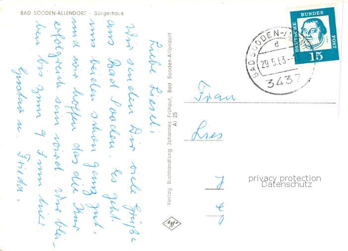 73810358 alte Postkarte Bad Sooden-Allendorf Buergerhaus postalisch gelaufen Erhaltung siehe scans [FriedD77] KatCode: 11110006636001