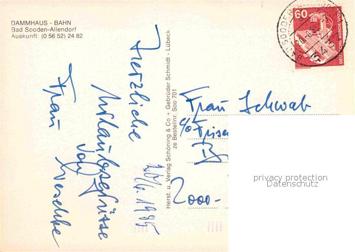 72773612 alte Postkarte Bad Sooden-Allendorf Dammhaus-Bahn Soodener Tor Weinreihe postalisch gelaufen Erhaltung siehe scans [AndreD76] KatCode: 11110006636001