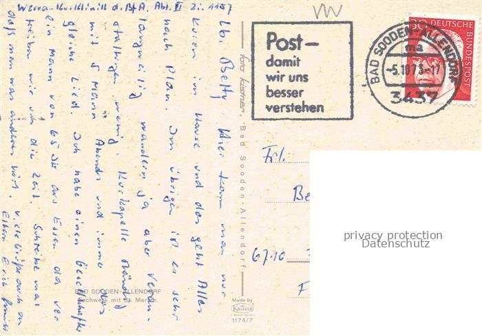 74104175 alte Postkarte BAD SOODEN-ALLENDORF Fachwerk mit St. Marien Kirche postalisch gelaufen Erhaltung siehe scans [FriedD77] KatCode: 11110006636001