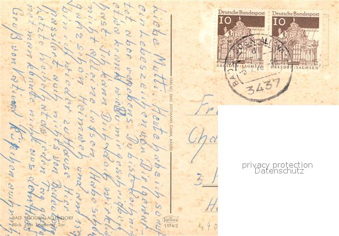 73214211 alte Postkarte Bad Sooden-Allendorf Fachwerkhaeuser Soodener Tor postalisch gelaufen Erhaltung siehe scans [FriedD77] KatCode: 11110006636001