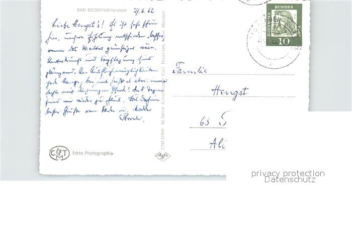 32571961 alte Postkarte Bad Sooden-Allendorf Fliegeraufnahme postalisch gelaufen Erhaltung siehe scans [WerneD78] KatCode: 11110006636001