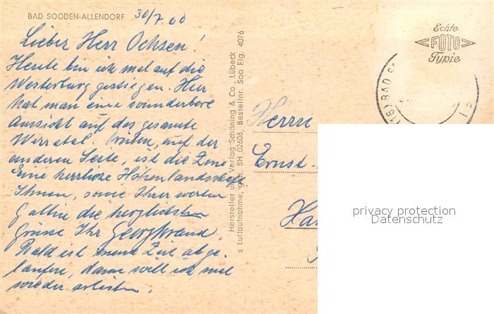 73609277 alte Postkarte Bad Sooden-Allendorf Fliegeraufnahme postalisch gelaufen Erhaltung siehe scans [WerneD78] KatCode: 11110006636001