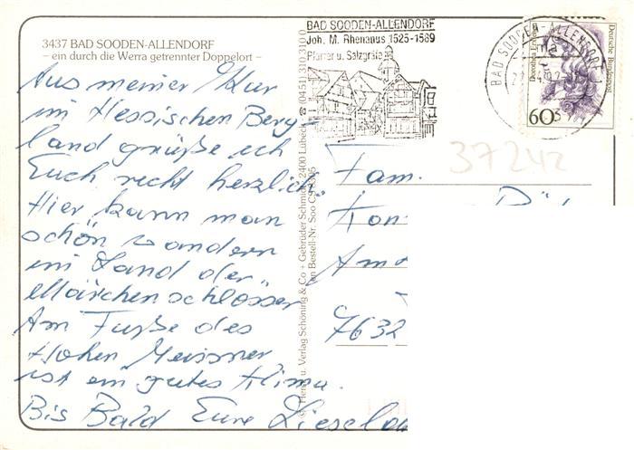 73941808 alte Postkarte Bad Sooden-Allendorf Fliegeraufnahme postalisch gelaufen Erhaltung siehe scans [FriedD77] KatCode: 11110006636001