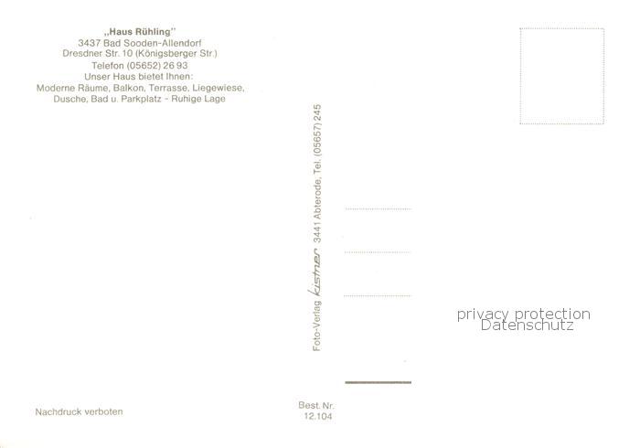 74052467 Bad Sooden-Allendorf Haus Ruehling Gaststube Zimmer postalisch nicht gelaufen Erhaltung siehe scans [FriedD77] KatCode: 11110006636001