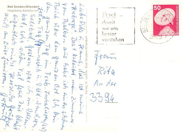 73905625 alte Postkarte Bad Sooden-Allendorf Hegeberg Sanatorium postalisch gelaufen Erhaltung siehe scans [FriedD77] KatCode: 11110006636001