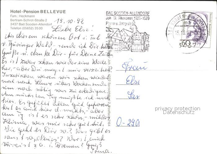 72504434 alte Postkarte Bad Sooden-Allendorf Hotel Bellevue postalisch gelaufen Erhaltung siehe scans KatCode: 11110006636001