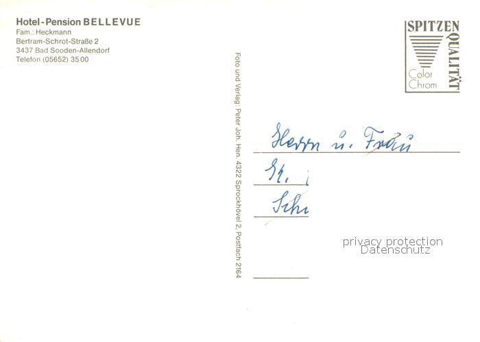 73651926 Bad Sooden-Allendorf Hotel Pension Bellevue Gaststube Kaminzimmer postalisch nicht gelaufen Erhaltung siehe scans [WerneD78] KatCode: 11110006636001