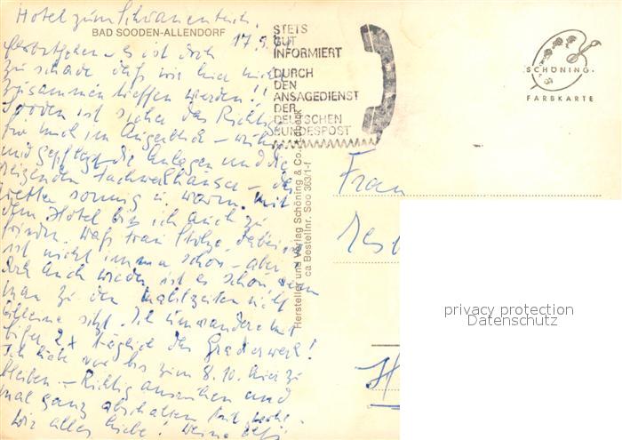 73047707 alte Postkarte Bad Sooden-Allendorf Hotel zum Schwanenteich postalisch gelaufen Erhaltung siehe scans [WerneD78] KatCode: 11110006636001