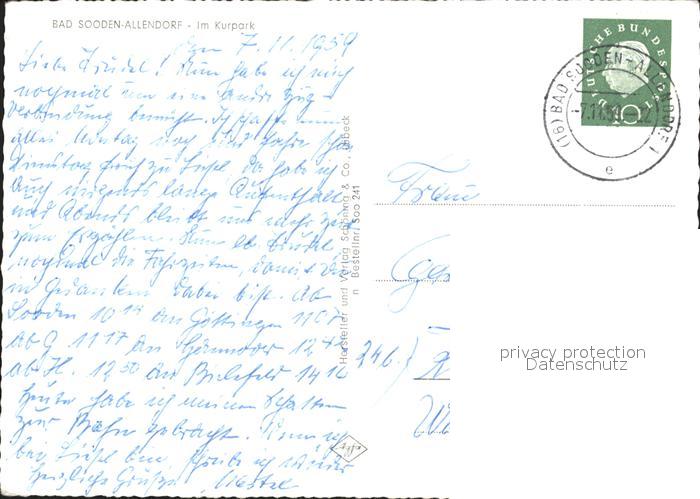 71986620 alte Postkarte Bad Sooden-Allendorf Im Kurpark postalisch gelaufen Erhaltung siehe scans KatCode: 11110006636001