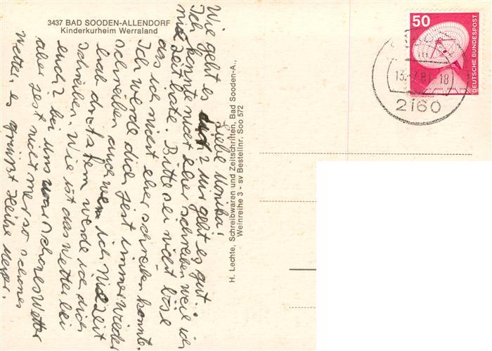 73937452 alte Postkarte Bad Sooden-Allendorf Kinderkurheim Werraland postalisch gelaufen Erhaltung siehe scans [WerneD78] KatCode: 11110006636001