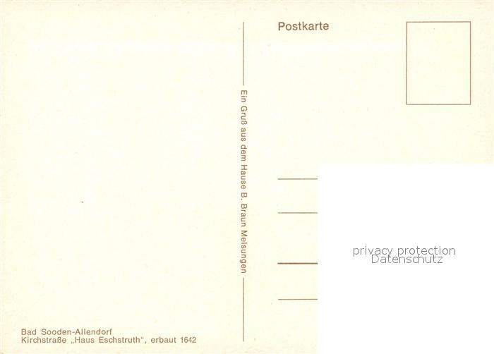 73105116 Bad Sooden-Allendorf Kirchstrasse Haus Eschstruth postalisch nicht gelaufen Erhaltung siehe scans [KathaD81] KatCode: 11110006636001