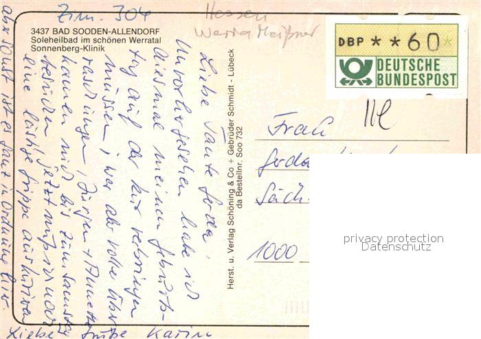 72888383 alte Postkarte Bad Sooden-Allendorf Klinik Weinreihe Fachwerkhaeuser Soodener Tor postalisch gelaufen Erhaltung siehe scans [FriedD77] KatCode: 11110006636001