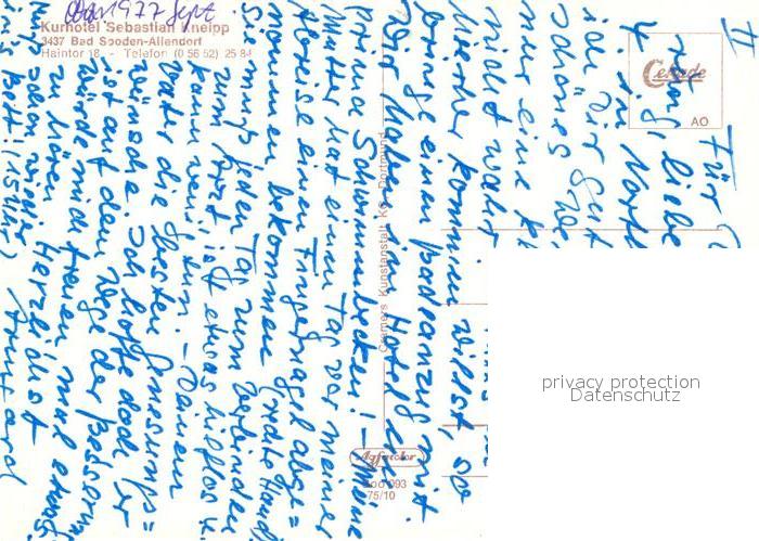 72960839 Bad Sooden-Allendorf Kurhotel Sebastian Kneipp postalisch nicht gelaufen Erhaltung siehe scans [LiesaD40] KatCode: 11110006636001