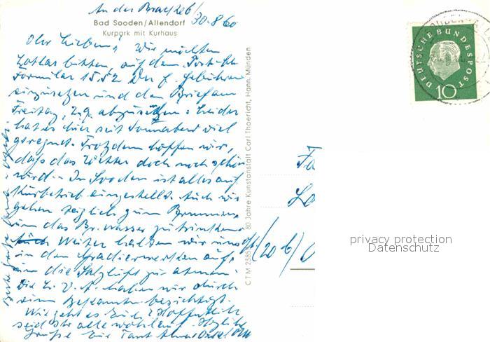 72798125 alte Postkarte Bad Sooden-Allendorf Kurpark Kurhaus postalisch gelaufen Erhaltung siehe scans [AndreD76] KatCode: 11110006636001