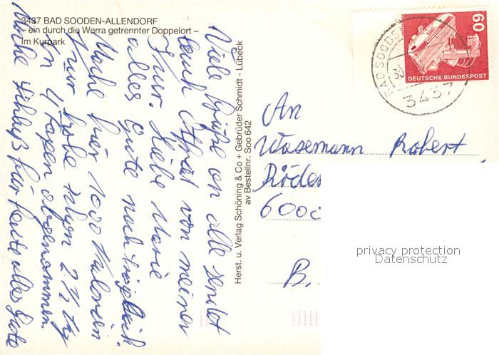 73214217 alte Postkarte Bad Sooden-Allendorf Kurpark Wasserspiele Fachwerkhaeuser postalisch gelaufen Erhaltung siehe scans [FriedD77] KatCode: 11110006636001