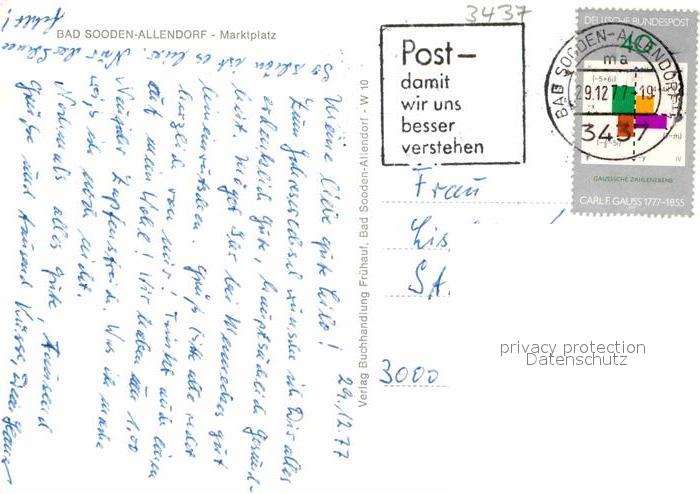 72915337 alte Postkarte Bad Sooden-Allendorf Marktplatz postalisch gelaufen Erhaltung siehe scans [WerneD78] KatCode: 11110006636001