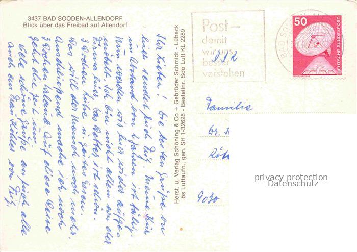 34143572 alte Postkarte BAD SOODEN-ALLENDORF Panorama Freibad Allendorf postalisch gelaufen Fliegeraufnahme Erhaltung siehe scans [FriedD77] KatCode: 11110006636001