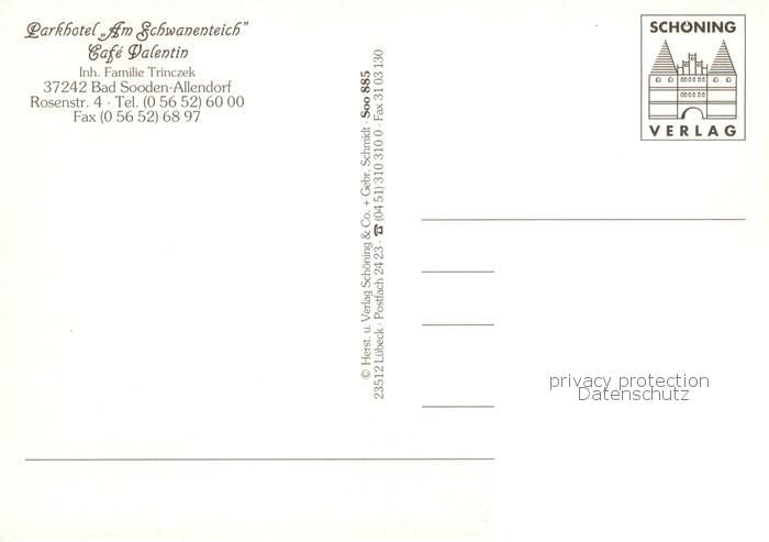 73845554 Bad Sooden-Allendorf Parkhotel am Schwanenteich mit Cafe Valentin postalisch nicht gelaufen Erhaltung siehe scans [WerneD78] KatCode: 11110006636001
