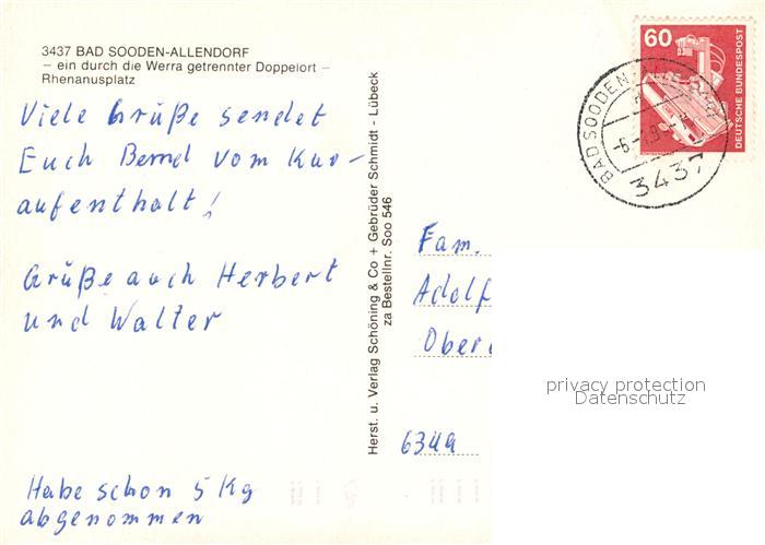 73248328 alte Postkarte Bad Sooden-Allendorf Rhenanusplatz Fachwerkhaeuser Kirchturm postalisch gelaufen Erhaltung siehe scans [KathaD81] KatCode: 11110006636001