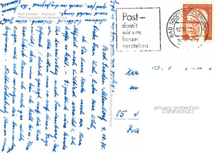 72811881 alte Postkarte Bad Sooden-Allendorf Rhenanusplatz mit Marienkirche postalisch gelaufen Erhaltung siehe scans [WerneD78] KatCode: 11110006636001