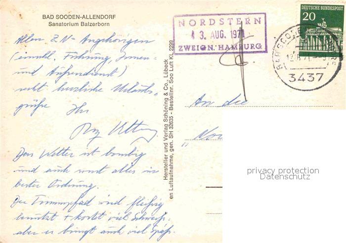 72774788 alte Postkarte Bad Sooden-Allendorf Sanatorium Balzerborn postalisch gelaufen Erhaltung siehe scans [AndreD76] KatCode: 11110006636001