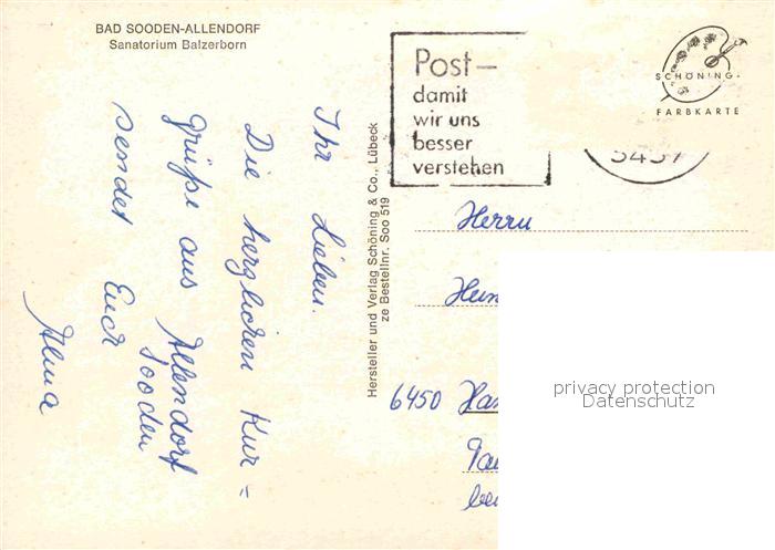 72739836 alte Postkarte Bad Sooden-Allendorf Sanatorium Balzerborn postalisch gelaufen Erhaltung siehe scans [LiesaD40] KatCode: 11110006636001
