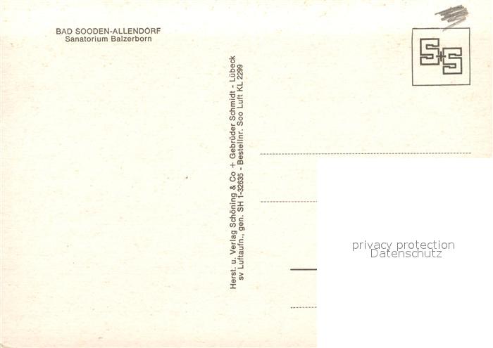 72960158 Bad Sooden-Allendorf Sanatorium Balzerborn postalisch nicht gelaufen Erhaltung siehe scans [PaolaD17] KatCode: 11110006636001