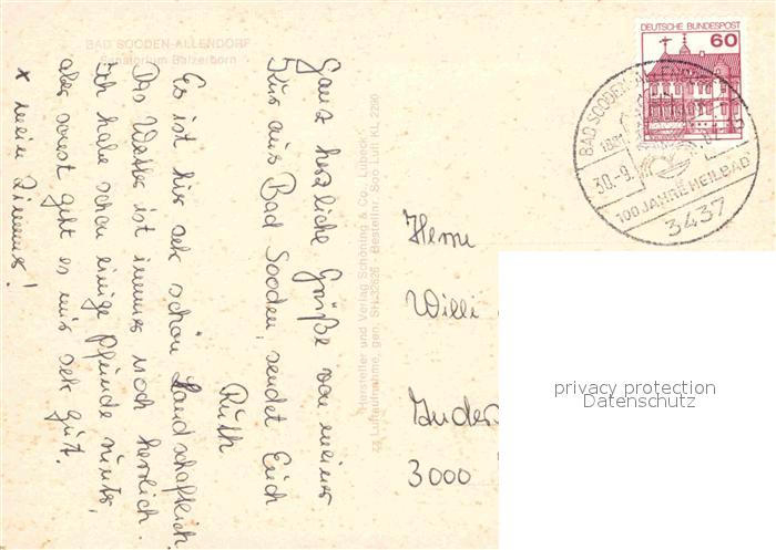 72833634 alte Postkarte Bad Sooden-Allendorf Sanatorium Balzerborn postalisch gelaufen Erhaltung siehe scans [FriedD77] KatCode: 11110006636001