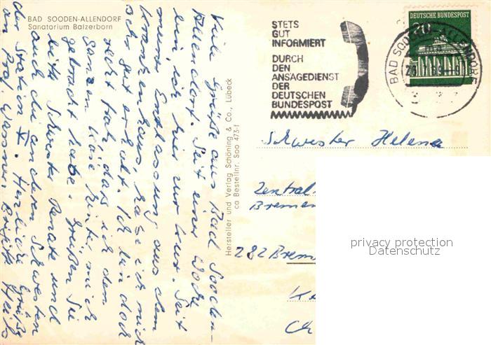 72794868 alte Postkarte Bad Sooden-Allendorf Sanatorium Balzerborn postalisch gelaufen Erhaltung siehe scans [KathaD81] KatCode: 11110006636001