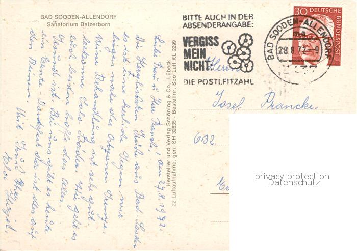 73841408 alte Postkarte Bad Sooden-Allendorf Sanatorium Balzerborn Fliegeraufnahme postalisch gelaufen Erhaltung siehe scans [WerneD78] KatCode: 11110006636001