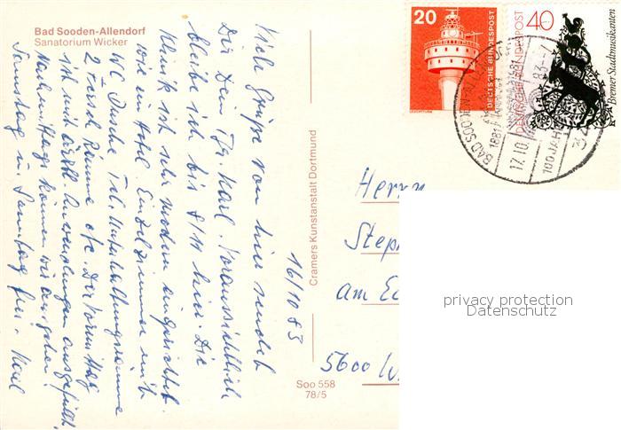 73841383 alte Postkarte Bad Sooden-Allendorf Sanatorium Wicker postalisch gelaufen Erhaltung siehe scans [WerneD78] KatCode: 11110006636001