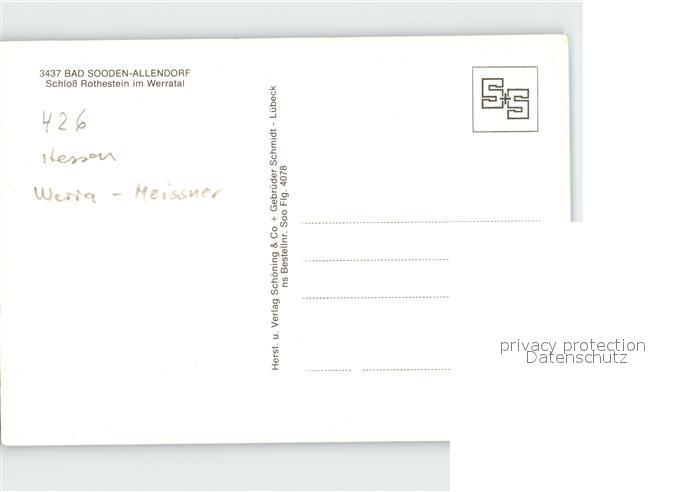 72255189 Bad Sooden-Allendorf Schloss Rothestein im Werratal Fliegeraufnahme postalisch nicht gelaufen Erhaltung siehe scans KatCode: 11110006636001