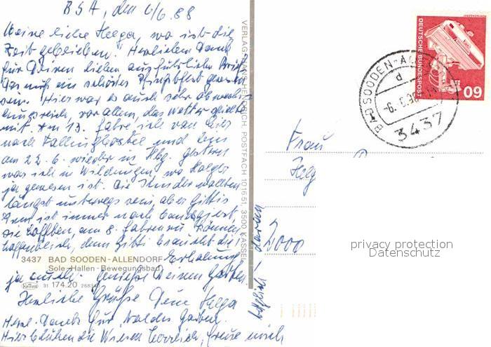 72739766 alte Postkarte Bad Sooden-Allendorf Sole-Hallen-Bewegungsbad postalisch gelaufen Erhaltung siehe scans [LiesaD40] KatCode: 11110006636001