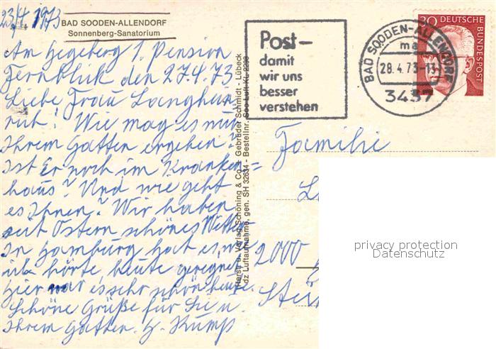 72774775 alte Postkarte Bad Sooden-Allendorf Sonnenberg Sanatorium postalisch gelaufen Erhaltung siehe scans [AndreD76] KatCode: 11110006636001