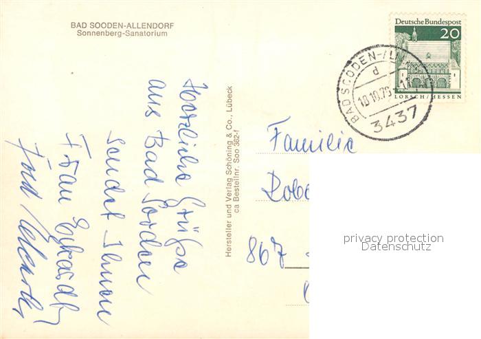72938180 alte Postkarte Bad Sooden-Allendorf Sonnenberg Sanatorium postalisch gelaufen Erhaltung siehe scans [WerneD78] KatCode: 11110006636001