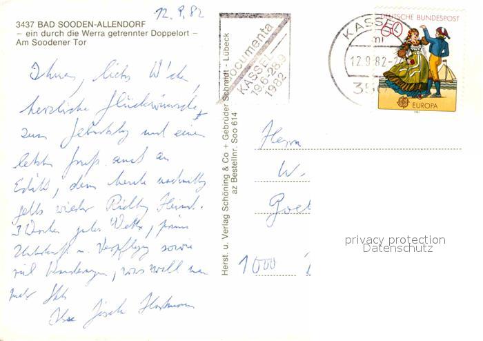 72890016 alte Postkarte Bad Sooden-Allendorf Soodener Tor postalisch gelaufen Erhaltung siehe scans [FriedD77] KatCode: 11110006636001