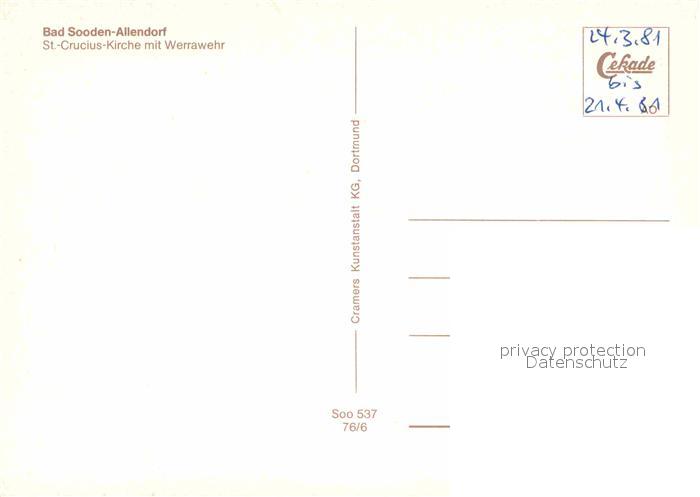 72865526 Bad Sooden-Allendorf St Crucius Kirche mit Werrawehr postalisch nicht gelaufen Erhaltung siehe scans [WerneD78] KatCode: 11110006636001