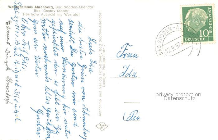 73762577 alte Postkarte Bad Sooden-Allendorf Waldgasthaus Ahrenberg Terrasse Gastraeume postalisch gelaufen Erhaltung siehe scans [WerneD78] KatCode: 11110006636001