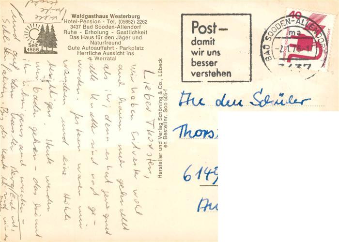 73949399 alte Postkarte Bad Sooden-Allendorf Waldgasthaus Westerburg Gastraum postalisch gelaufen Erhaltung siehe scans [WerneD78] KatCode: 11110006636001