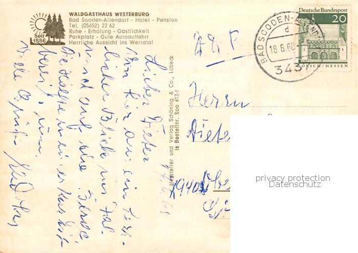 73838081 alte Postkarte Bad Sooden-Allendorf Waldgasthaus Westerburg Panorama Werratal Wild postalisch gelaufen Erhaltung siehe scans [FriedD77] KatCode: 11110006636001