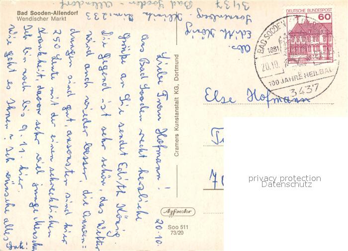 72953318 alte Postkarte Bad Sooden-Allendorf Wendischer Markt Fachwerkhaeuser Herbststimmung postalisch gelaufen Erhaltung siehe scans [FriedD77] KatCode: 11110006636001