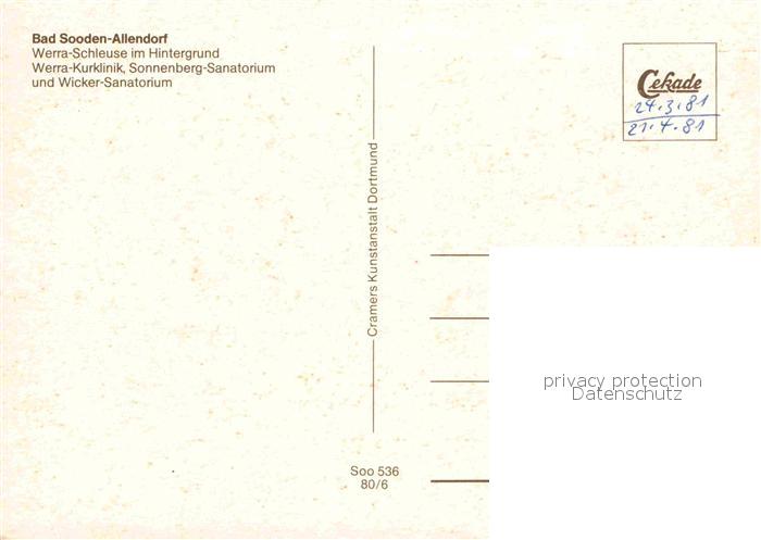 72865523 Bad Sooden-Allendorf Werra Schleuse Kurklinik Sonnenberg und Wicker Sanatorium postalisch nicht gelaufen Erhaltung siehe scans [WerneD78] KatCode: 11110006636001