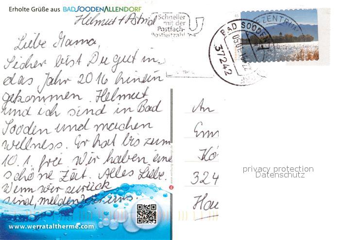 73090275 alte Postkarte Bad Sooden-Allendorf Werratal-Therme postalisch gelaufen Erhaltung siehe scans [PaolaD17] KatCode: 11110006636001