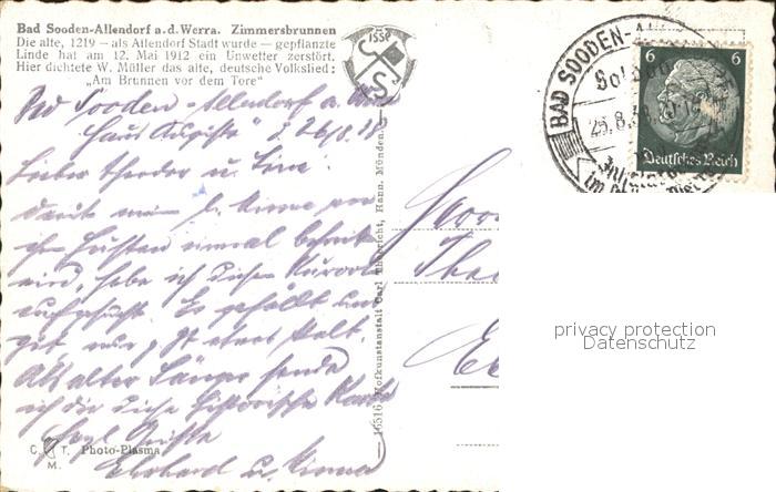 72082920 alte Postkarte Bad Sooden-Allendorf Zimmersbrunnen Alte Linde Volkslied Am Brunnen vor dem Tore von W. Mueller postalisch gelaufen Erhaltung siehe scans KatCode: 11110006636001