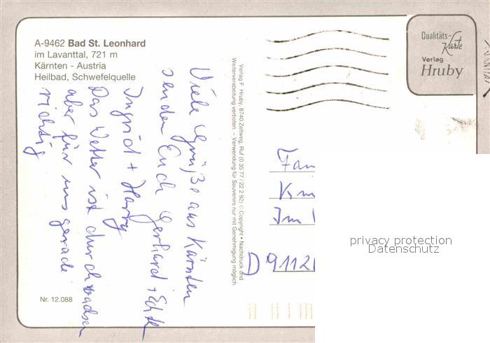 72707286 alte Postkarte Bad St Leonhard Lavanttal Hauptstrasse Kirche Brunnen Panorama postalisch gelaufen Erhaltung siehe scans [WerneD78] KatCode: 11390213020901
